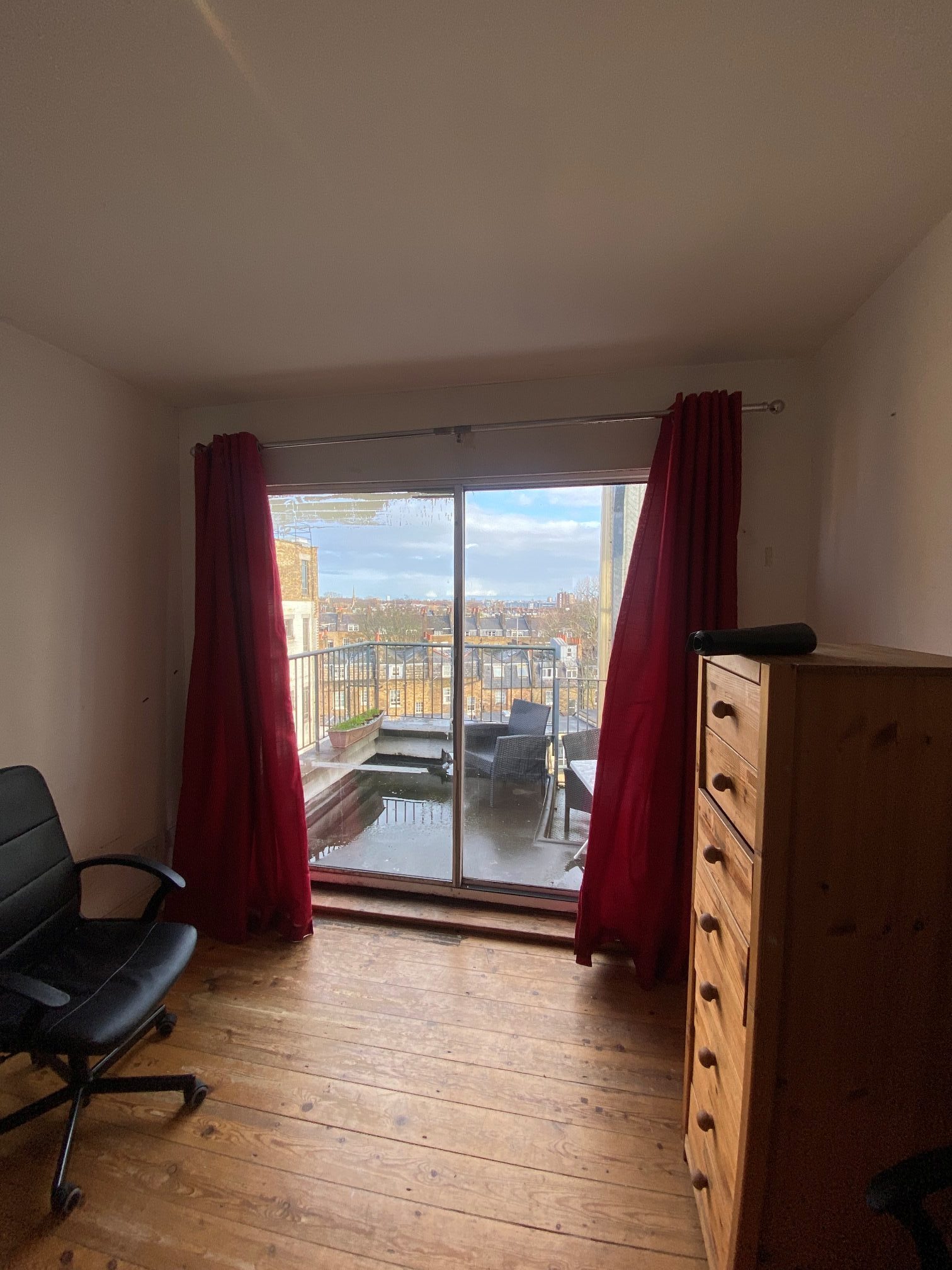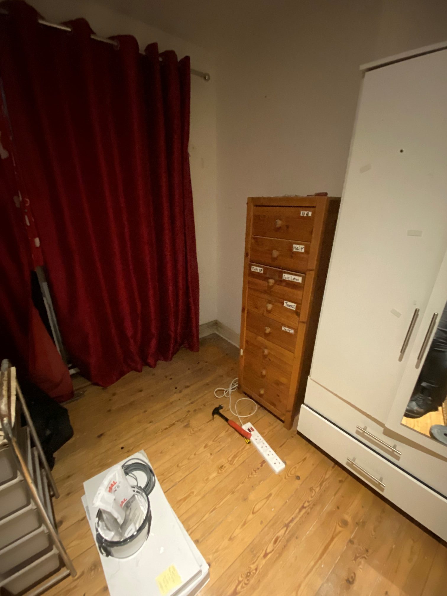 Once the furniture was gone, I took care of the curtains which needed to be removed as they had been stained and damp with mould.