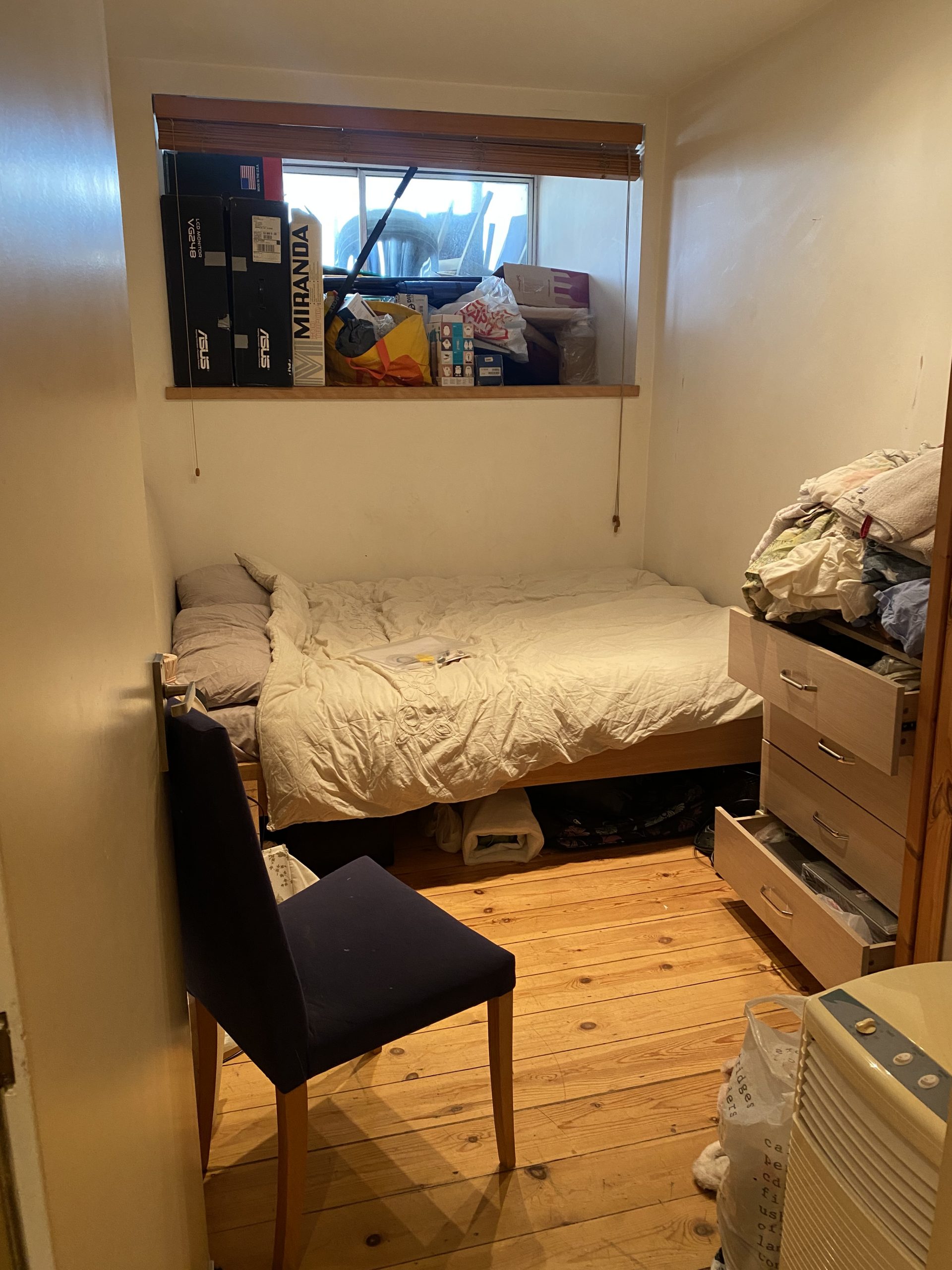 - Less accessible spaces such top of the wardrobe, under the bed, and by the window, would be used for suitcases and work stuff.