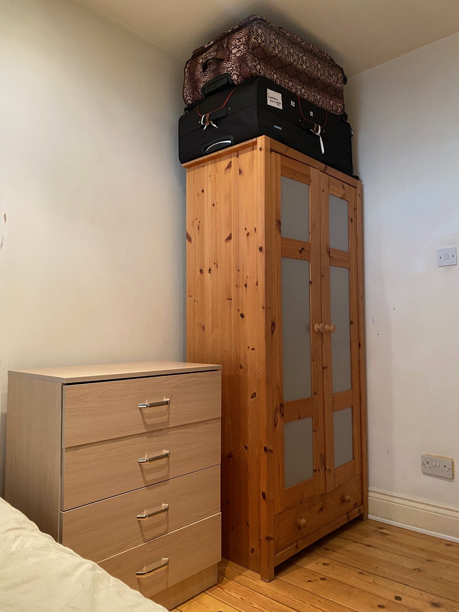 The wardrobe needed some TLC, as a couple of the hinges came off and needed to be screwed back, so I have helped the client with that (I can be handy with a screwdriver!).